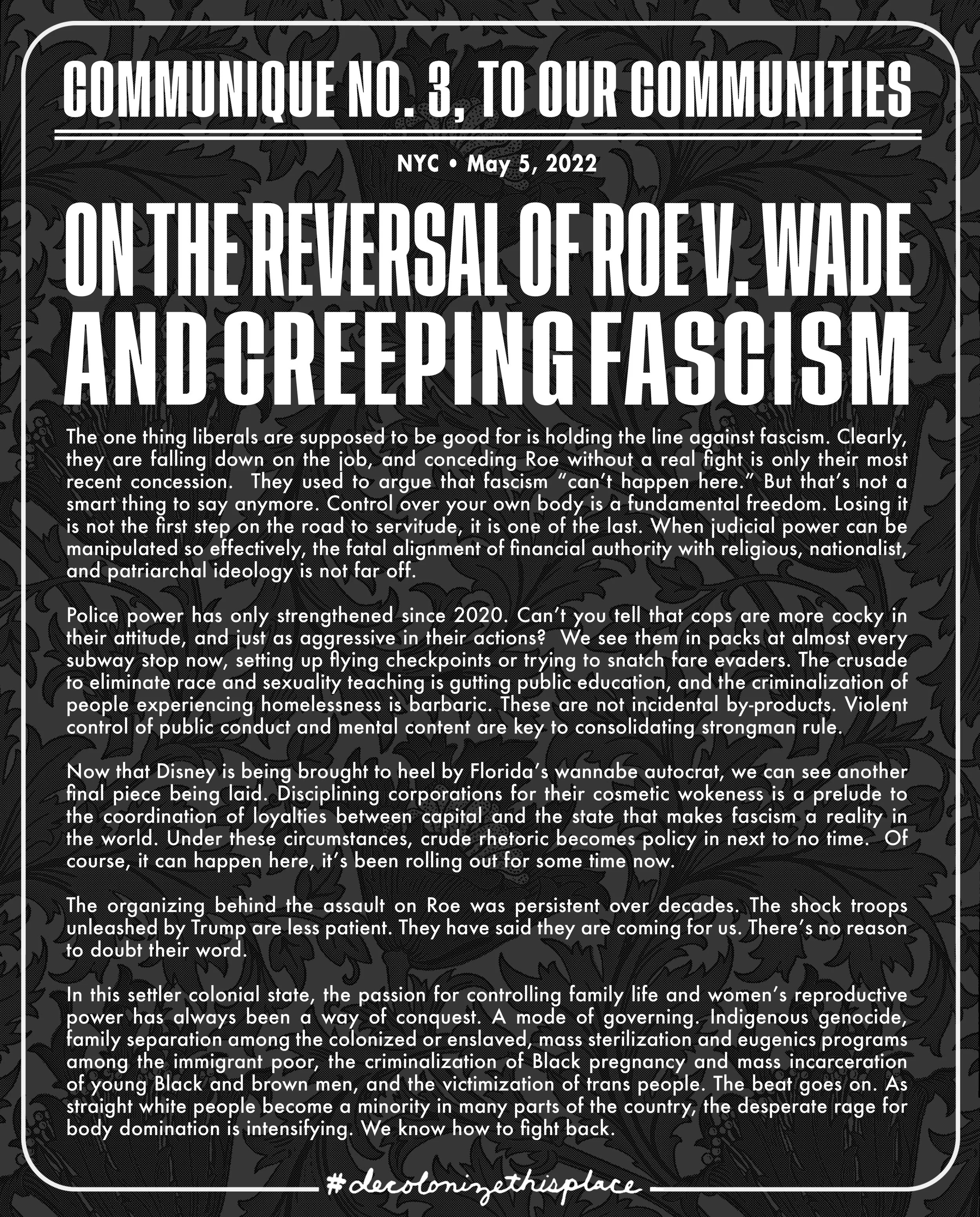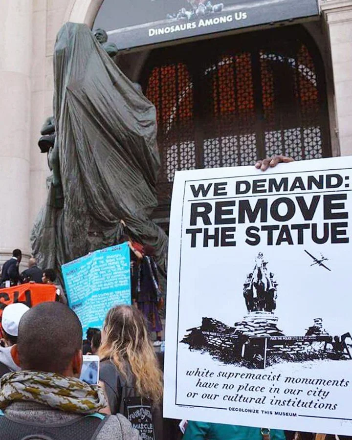 The museum has been silent on the issue of renaming Columbus Day as Indigenous Peoples Day, and it has yet to move forward on the acknowledgement that its building sits on occupied Lenape land—a decision wholly under its own control. We have condemned this position of non-advocacy and this reluctance to adopt an Acknowledgement as aggressive actions against Indigenous peoples. We have demanded that the museum take immediate steps to remedy the harms. Decolonize, Reclaim, Reimagine.